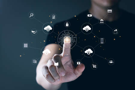 Cyber security technology and online data protection in an innovative perception . Concept of technology for security of data storage used by global business network server to secure cyber information