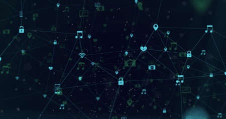 Technology Network Data and Social media Icons Connection, Digital Network and Cyber Security Background Concept.