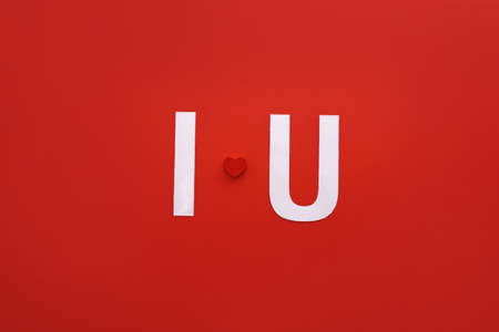 red heart with the word love you on white background