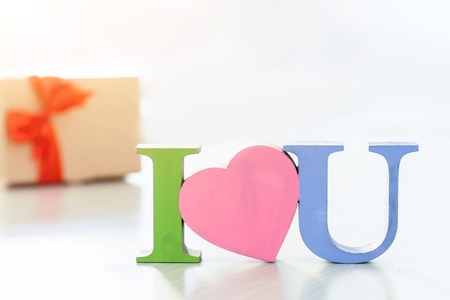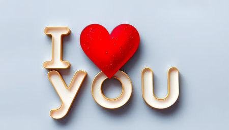 Heart is placed on top of the letters I love you in a white box, creating a romantic and affectionate message