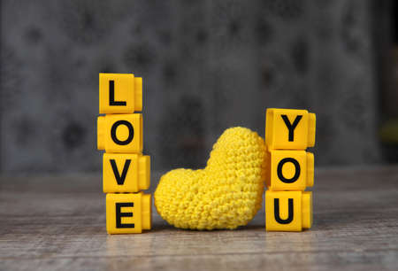 The inscription of the cubes I love you on a wooden table