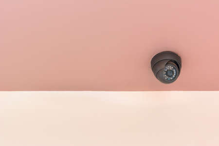 old small CCTV camera on ceiling.