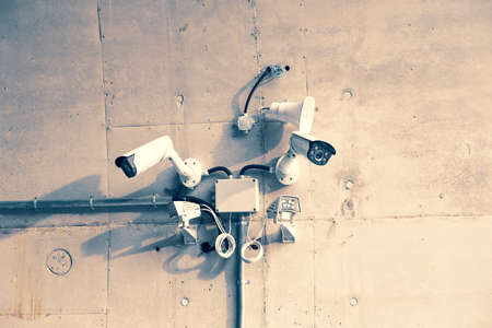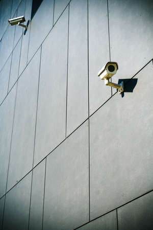 Surveillance cameras building facade closeup. Electronic circuit. The concept of security