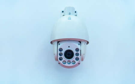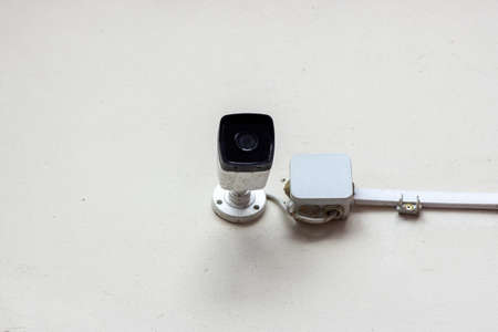 security cctv camera on white wall background