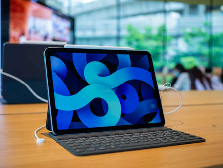 Bangkok, Thailand - October 29, 2020: The new iPad Air 2020 device is installed at the Central World Apple Store for customers to view and trial.