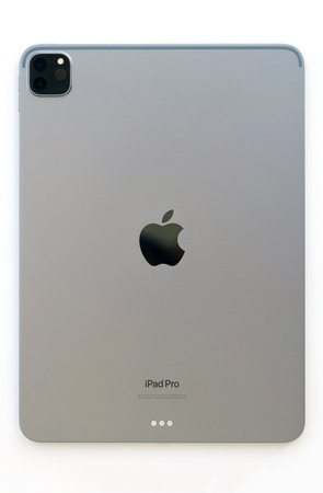KYIV, UKRAINE - 4 MAY, 2023: Apple ipad 2022 with 12.9 inch diagonal display resolution on m2 processor core close up
