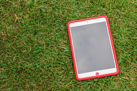 tablet 8.4 inches on green glass background