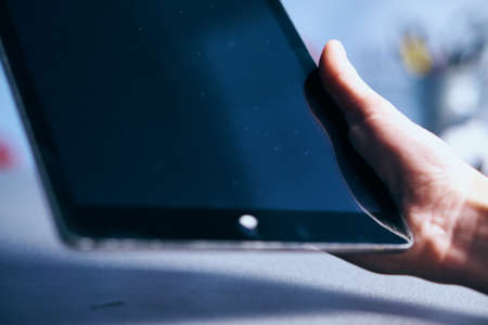 technology desk concept with hands holding tablet. Resolution and high quality beautiful photo