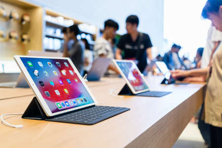 BANGKOK, THAILAND - SEPTEMBER 11, 2018: Apple Store New Product. Ipad Pro with smart keyboard display at apple store in Iconsiam Bangkok Thailand.