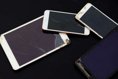 Mobile screen broke because it was dropped, broken glass screen smartphone