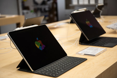 Aventura, Florida, USA - September 20, 2019: iPad Pro section at the Apple store in Aventura mall with tablets on the table