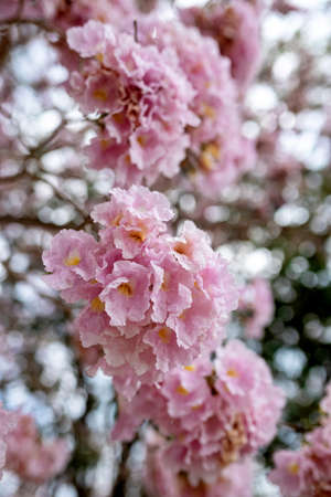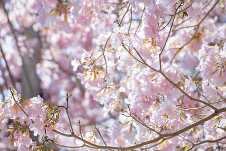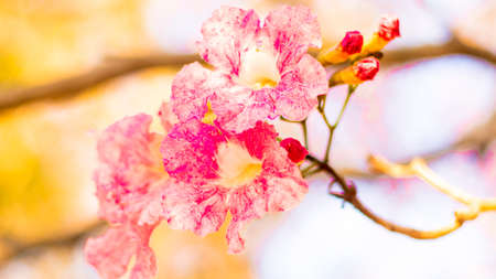 Selective focus soft light Beautiful Pink Trumpet flower or Tabebuia heterophylla