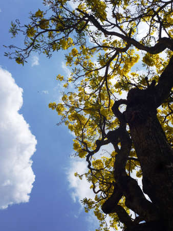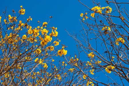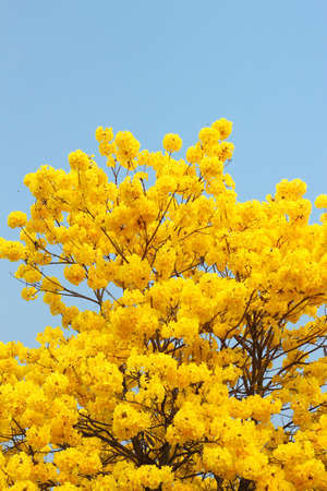 blooming Yellow Trumpet tree againts blue sky