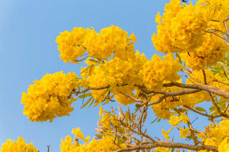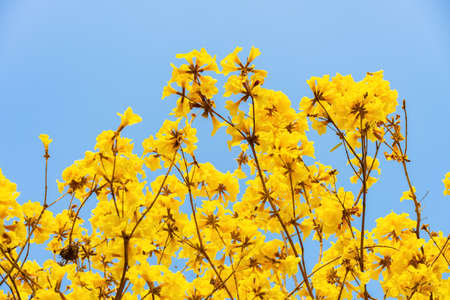 Tabebuia Chrysantha or yellow flower tree with blue sky on sunny day