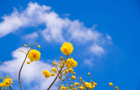 Yellow Pridiyathorn, yellow flower in nature blue sky background