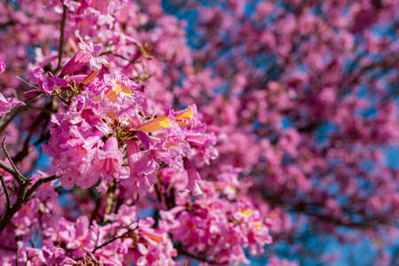 Full of bloom pink trumpet trees with blue sky