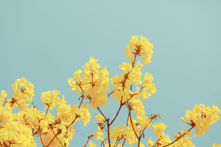 Yellow Flowers on the blue sky background. Vintage style.