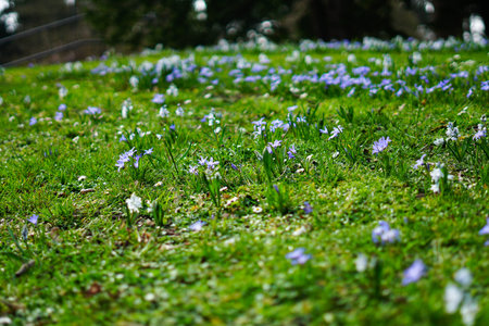 Common star hyacinths are early bloomers that herald spring. They bloom at Easter time. The flower is found in the park, forest, and garden. beautiful blue, white flowers.