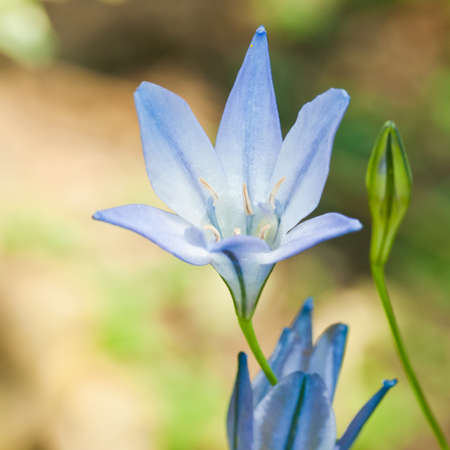 Blue blossom flower spring snowdrops Scilla Squill Soft focus. nature background.