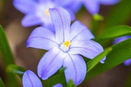 Purple Chionodoxa blooming in a spring garden
