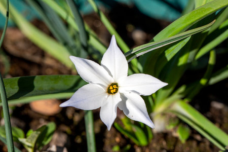 Closeup of white spring flower Ipheion uniflorum