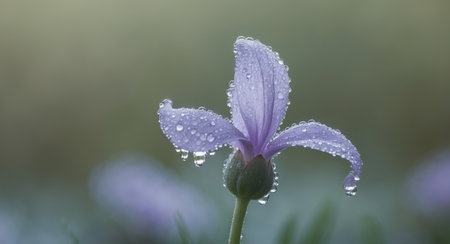 AI Generated. Delicate Purple Flower With Dew Drops On Petals