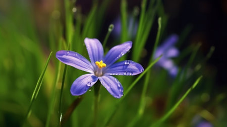 Blue-Eyed Grass flower beautifully bloomed with natural background. Created by Generative AI.