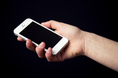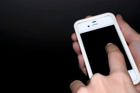 hands on smartphone on black background