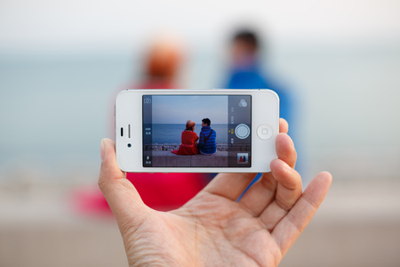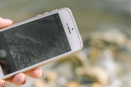 Mobile phone taking picture shot with nature background