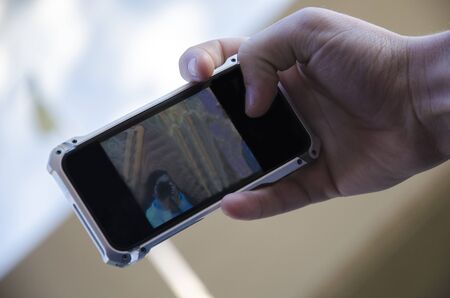 male hand holds the phone. mobile photography. close-up