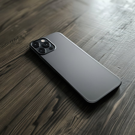 New Apple iPhone 14 Pro Max Space Black on a wooden background.