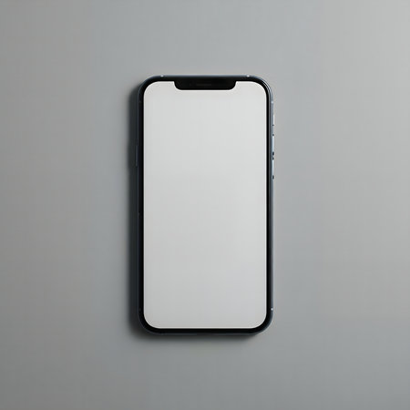 Clean mockup of a smartphone with a blank screen on a gray background.