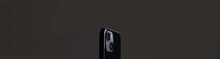 Closeup smartphone camera with double lenses on a black background