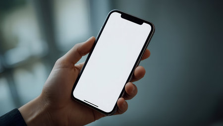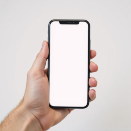 White Screen Smartphone Held by Person's Hand
