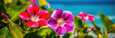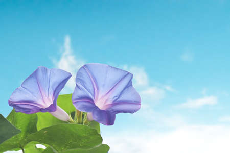 Morning glory flowers in garden, nature background. Morning glory flower.