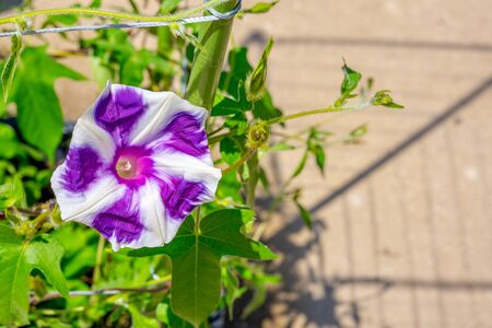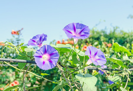 Purple morning glory flower in the garden with sunlight, Thailand.