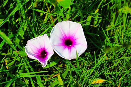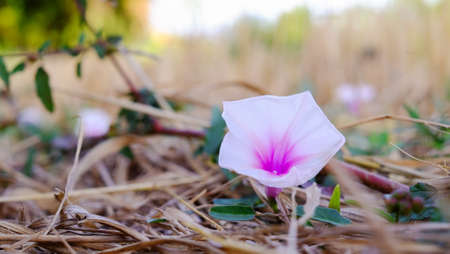 Close up flowers of the Thai morning glory in Rice fields after harvest