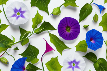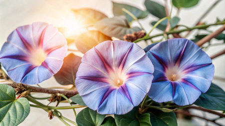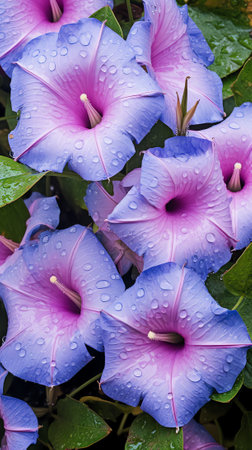 Gentle Radiance of Morning Glory Blooms Enigmatic Violet Petals Drenched in Early Dewdrops Kiss