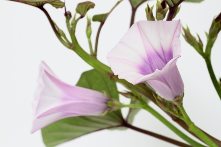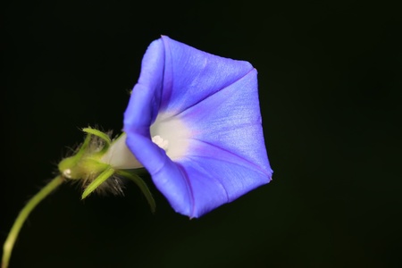 Creeper Morning Glory vine flower in bloom and a young bud awaiting to spring. Ipomoea purpurea.