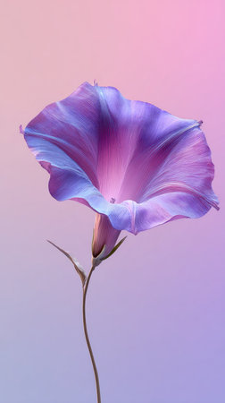 A close-up of a beautiful purple morning glory flower, with a soft pastel gradient background.