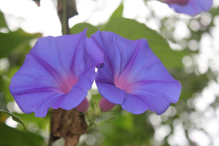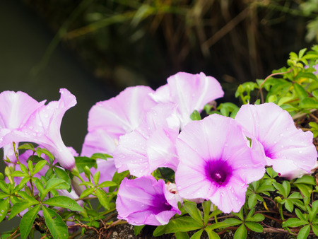 Morning Glory flowers in the garden with rain drops,Thailand.