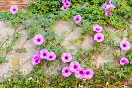 purple Ipomoea pes-caprae Sweet ( Ipomoea pes-caprae (L.) R.Br.) on old concrete