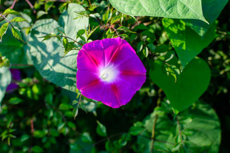 The Morning glory in summer, Bright sunlight pierces dense foliage, the air feels hot, natural color