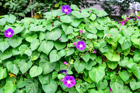 Ipomoea purpurea morning glory in the garden.