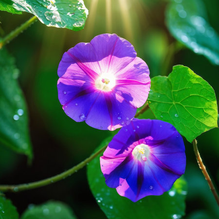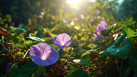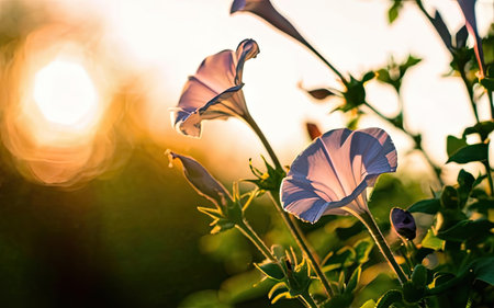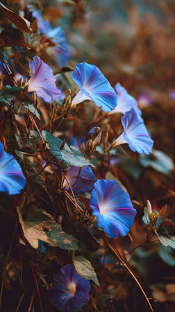 Close-up of vibrant morning glory flowers against a dreamy bokeh background. Great for nature and floral themes.