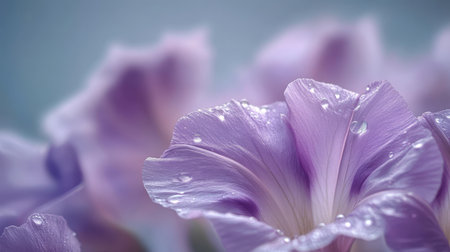 Stunning Close-Up of Pastel Purple Morning Glory Petals with Dew Drops Sparkling in Gentle Light