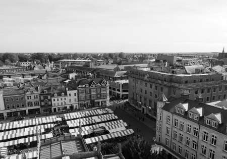 CAMBRIDGE, UK - CIRCA OCTOBER 2018: Aerial view of the Market Square in black and white