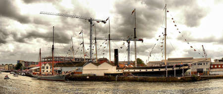 BRISTOL, UK - CIRCA SEPTEMBER 2016: Bristol Harbour (part of Port of Bristol) in black and white
