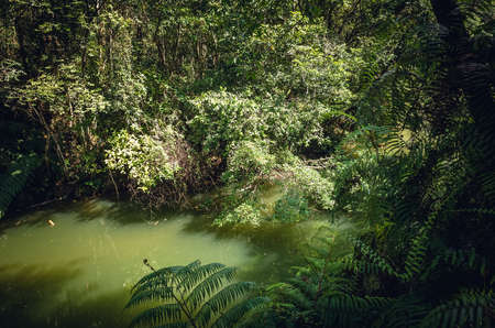 landscape of tropical forest with a pond in the outdoor