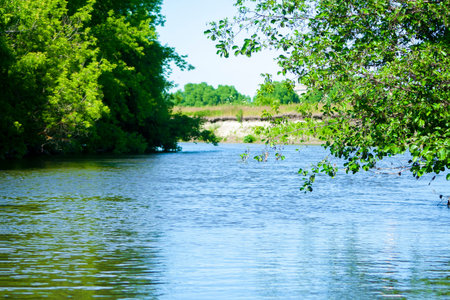 Beautiful summer landscape with river and blue